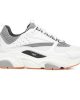 White, grey and orange technical knit trainers from Dior featuring smooth calfskin, suede details and a low-top silhouette.