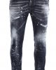 paint-splatter distressed jeans from DSQUARED2 featuring black/multicolour, stretch-cotton, paint splatter detail, distressed effect, skinny cut, front button fastening and classic five pockets.