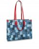 Damier and Monogram play stylishly together on this casual-chic Onthego GM tote bag. The patchwork pattern of raw and washed denim blue is printed on the canvas, creating an interesting illusion of texture. Subtle Monogram motifs add refinement, while the red leather trim brings a bold touch. A roomy, fashionable piece, perfect for everyday wear.