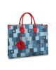 Damier and Monogram play stylishly together on this casual-chic Onthego GM tote bag. The patchwork pattern of raw and washed denim blue is printed on the canvas, creating an interesting ….