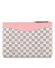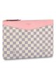 Subtly grained cowhide leather combines with light-hearted Damier Azur canvas, for a Daily Pouch that is both practical and chic. The zip closure – accented with leather pulls – opens wide to reveal a spacious interior, roomy enough for an iPad or other belongings. This stylish hold-all can be carried as a clutch or slipped inside a larger bag.