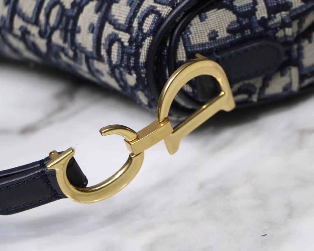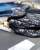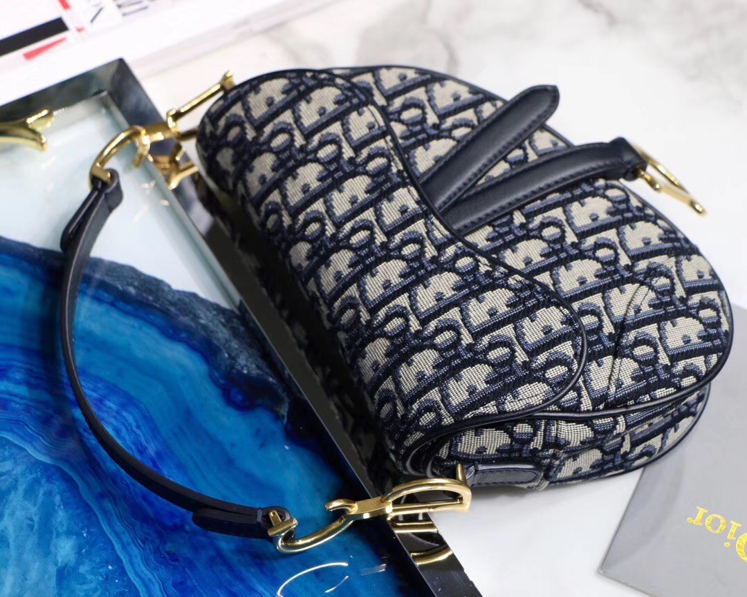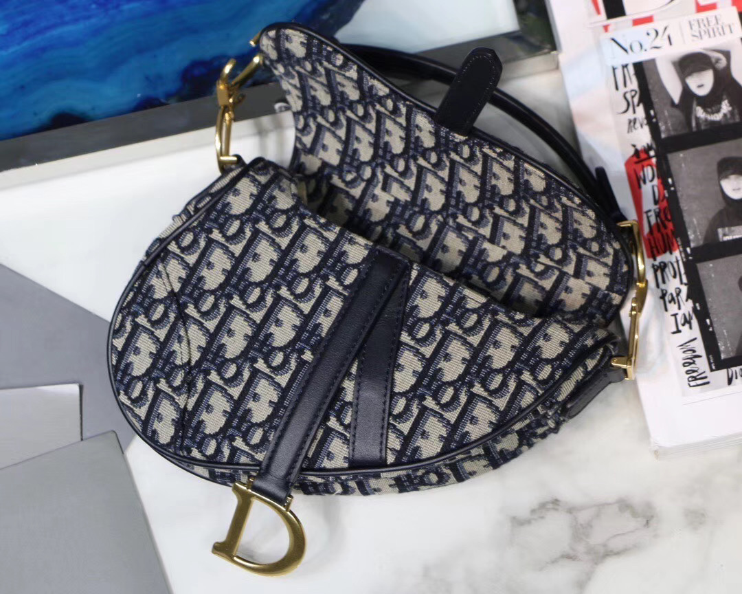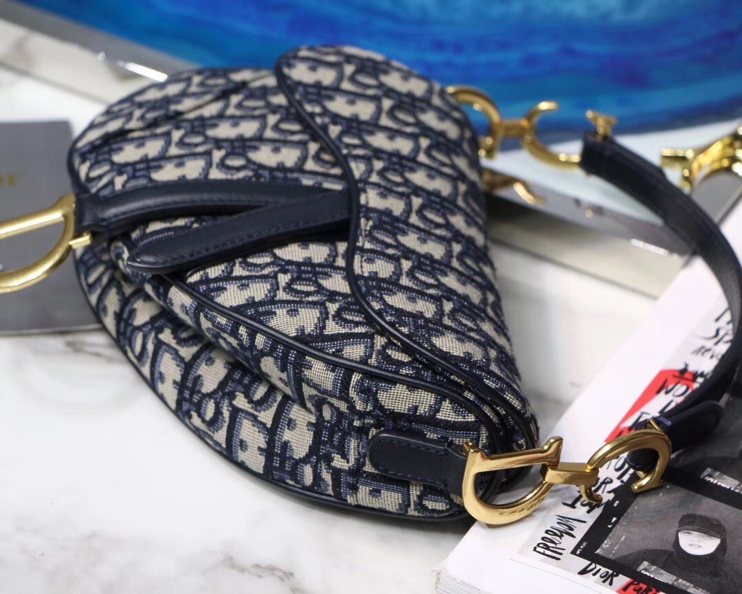 Maria Grazia Chiuri brings a fresh update to the iconic Saddle bag. The heritage design showcases the emblematic ‘D’-stirrup magnetic clasp and Saddle flap with the signature ‘CD’ structure on both sides of the handle. The fully embroidered blue Dior Oblique jacquard features antique gold-finish metal hardware and the ‘Christian Dior’ signature on the front. The modern silhouette may be customized with alternative straps.