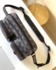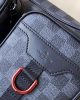 The comfortable Utility Messenger bag in Damier Graphite canvas combines old-school rigour with fresh design details such as matte black hardware and a red metallic D-ring on one of its front pockets. For shoulder or cross-body carry, it features two front pockets with wide zipped openings for easy access to daily essentials.